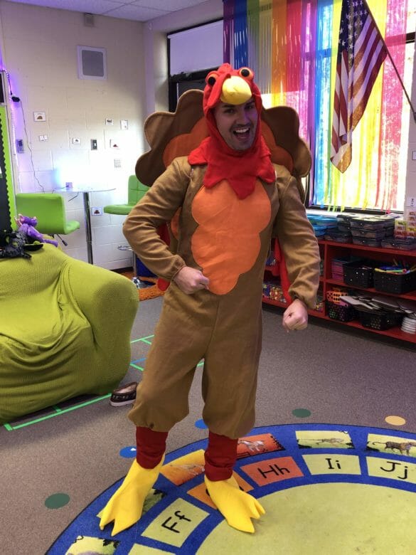 Mr. Greg takes dancing to another level, ending each day with a dance party complete with thumping music and flashing lights. While the dance party is part of his end-of-day routine, he makes it unique by adding in some new music and dancing with the kids. What a terrific way to end the day with his students’ brains gushing those happy hormones as they leave, eager to return for another fun day in his class!